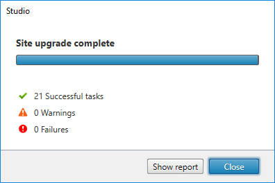 In Studio you have to choose between a manual Site database upgrade, or an automatic Site database upgrade.